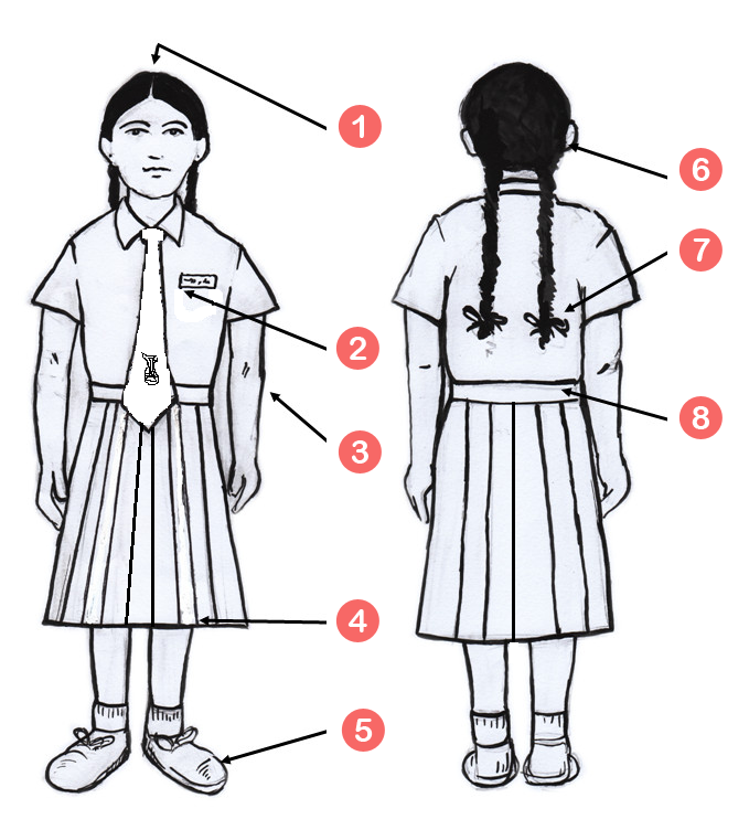 - පාසල් ලාංඡනය දකුණු කෙළවර සම්බන්ධ කර මසා තිබිය යුතුය.